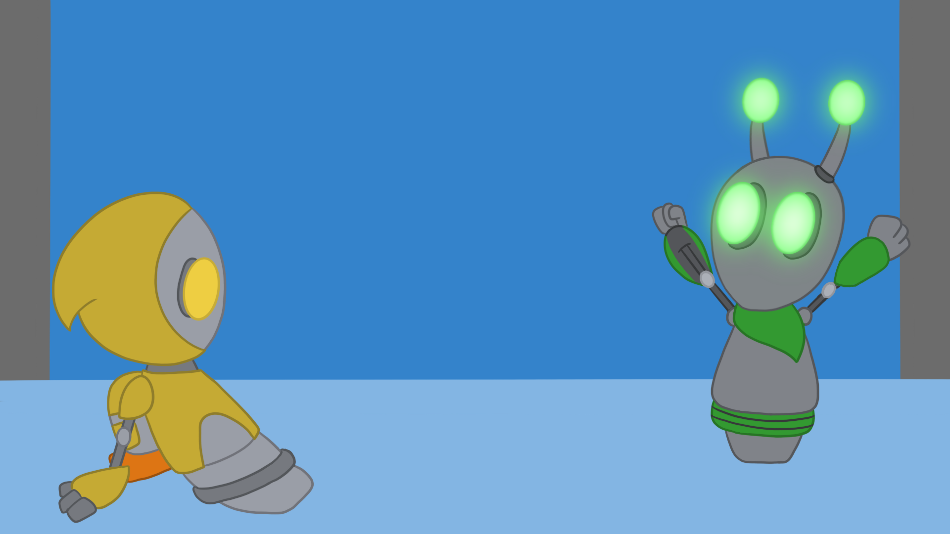 The last things I worked on this sprint was making the background menu artwork. I will admit, I was a bit nervous with this, since I don’t usually draw robots. However, the characters provided were simple in appearance, so I felt like I could at least deliver with the quality. I did the basic menu art, but I also worked on two different versions of win/loose screens. The difference between these versions were the winners of each one. Overall, I am very happy with what I drew, and I’m glad that all three drawings were received warmly.