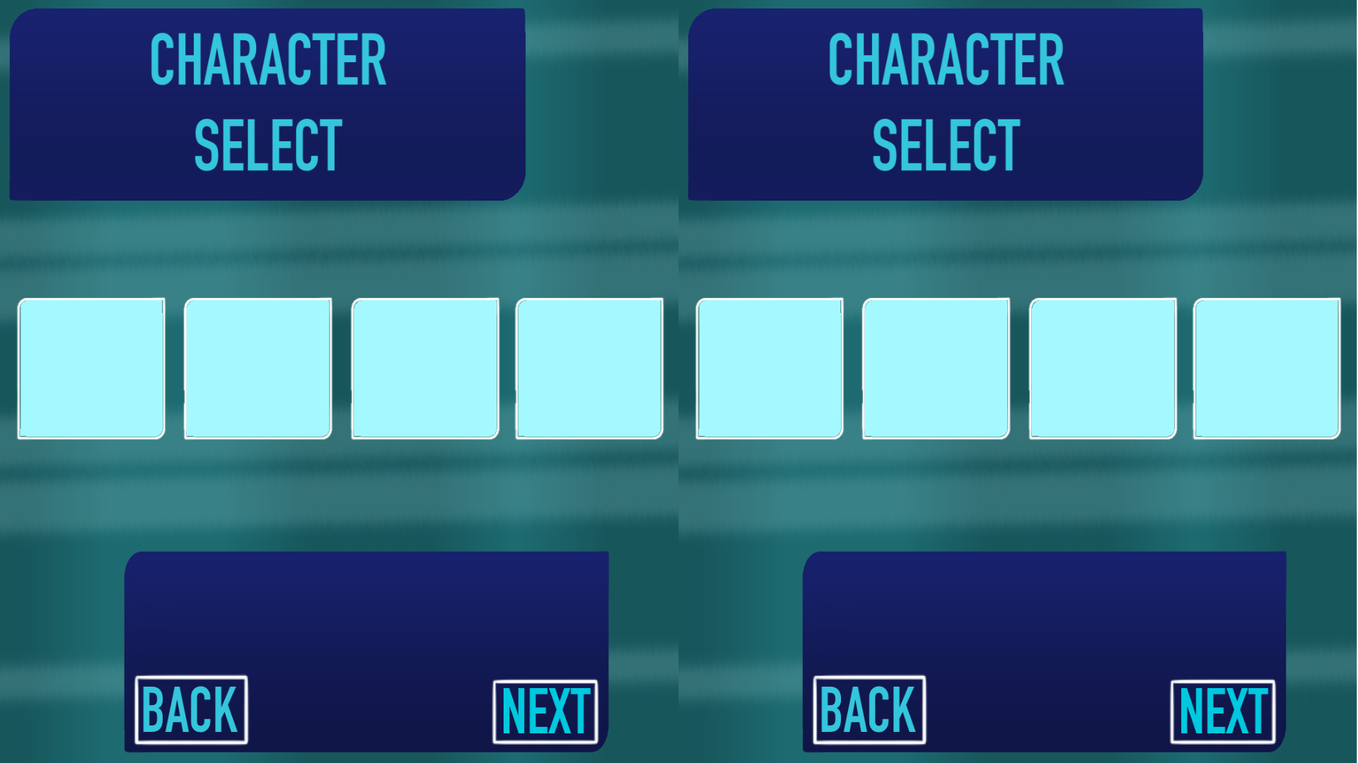 The first things I worked were the menu UIs. This included not only the level select screen, but also the character select screen. The character select screen was the one I had a tougher time with; as the designer requested for it to be split screen. However, this was tougher than anticipated. I particularly struggled with getting the background right for the split screen, but in the end, I was able to make it work, and my leaders were satisfied with what I made.