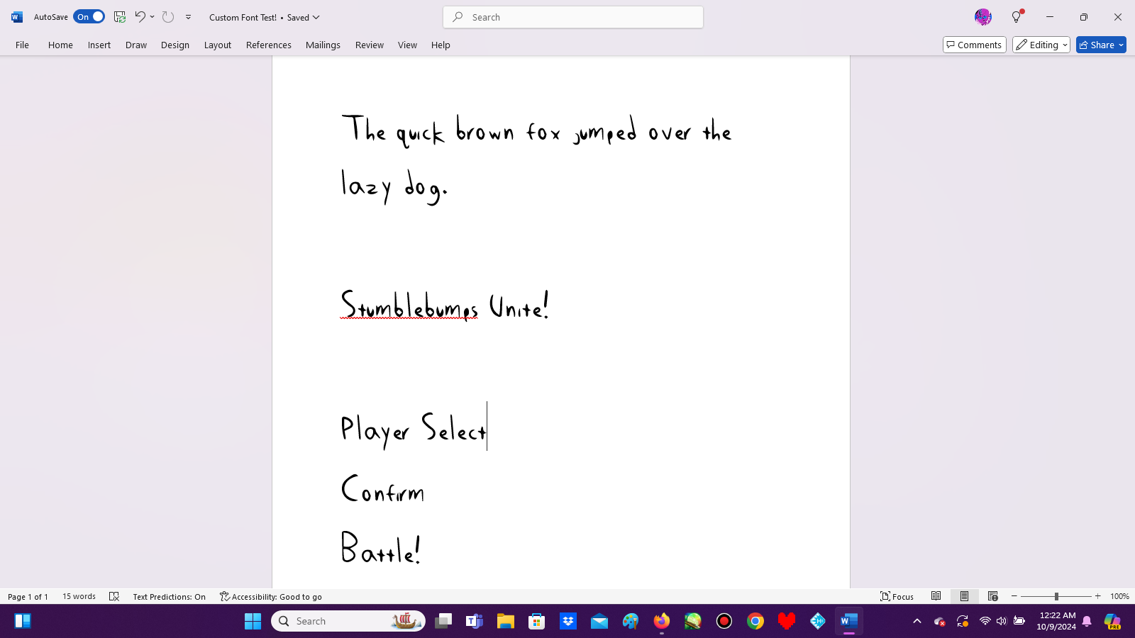 This sprint was a particularly tough one. Not only did I have to learn how to create a font from scratch, I also had to make sure the font would work in most programs. This task took up most of the sprint, but I am grateful for the opportunity to learn this skill. The first task I had to do was to create each font character in my own handwriting. In prior sprints, Donovan and Micheal liked my handwriting so much that they wanted to incorporate it into the final game.